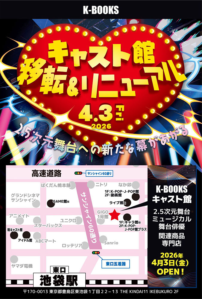 2026年4月3日(金) 2.5次元舞台・ミュージカル関連商品専門店「キャスト館」が移転リニューアルOPEN!