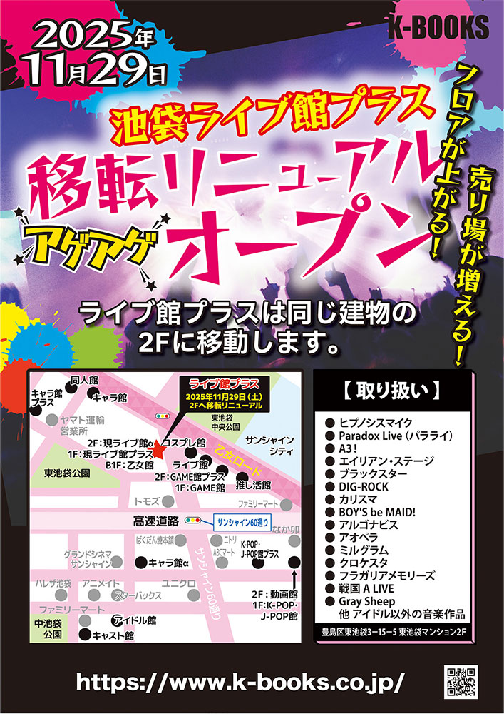 2025年11月29日(土) 「ライブ館プラス」が現店舗ビルの2Fに増床移転します! フロアが上がる!売り場が増える!アゲアゲリニューアル!